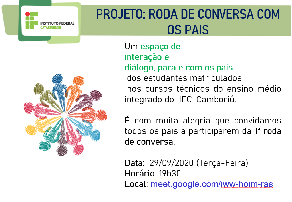 Projeto: Roda de conversa com os pais – dia 29/09, às 19h30