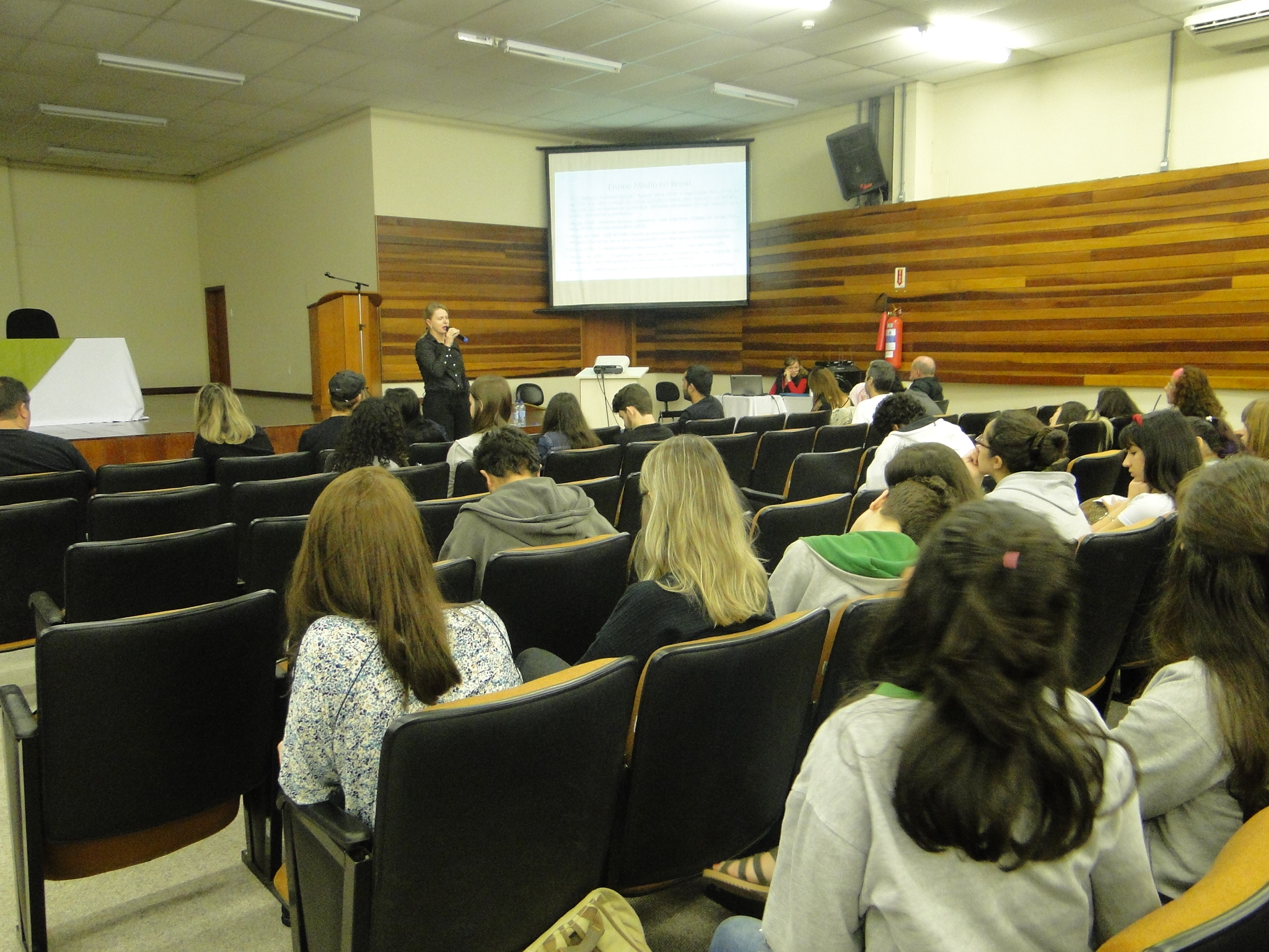 Durante a mobilização, os participantes acompanharam a explicação da professora Filomena Lucia Gossler Rodrigues da Silva a respeito da Medida Provisória (MP) nº 746/2016, que institui a Política de Fomento à Implementação de Escolas de Ensino Médio em Tempo Integral. A docente apresentou a MP e abordou, ponto a ponto, as principais mudanças na educação estabelecidas pela Medida.
