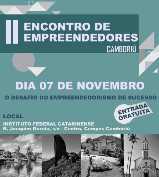 No dia 07, às 19h, o Instituto Federal Catarinense (IFC) – Campus Camboriú recebe o 2° Encontro de Empreendedores do município. O evento é gratuito e destinado aos empresários e interessados no assunto.