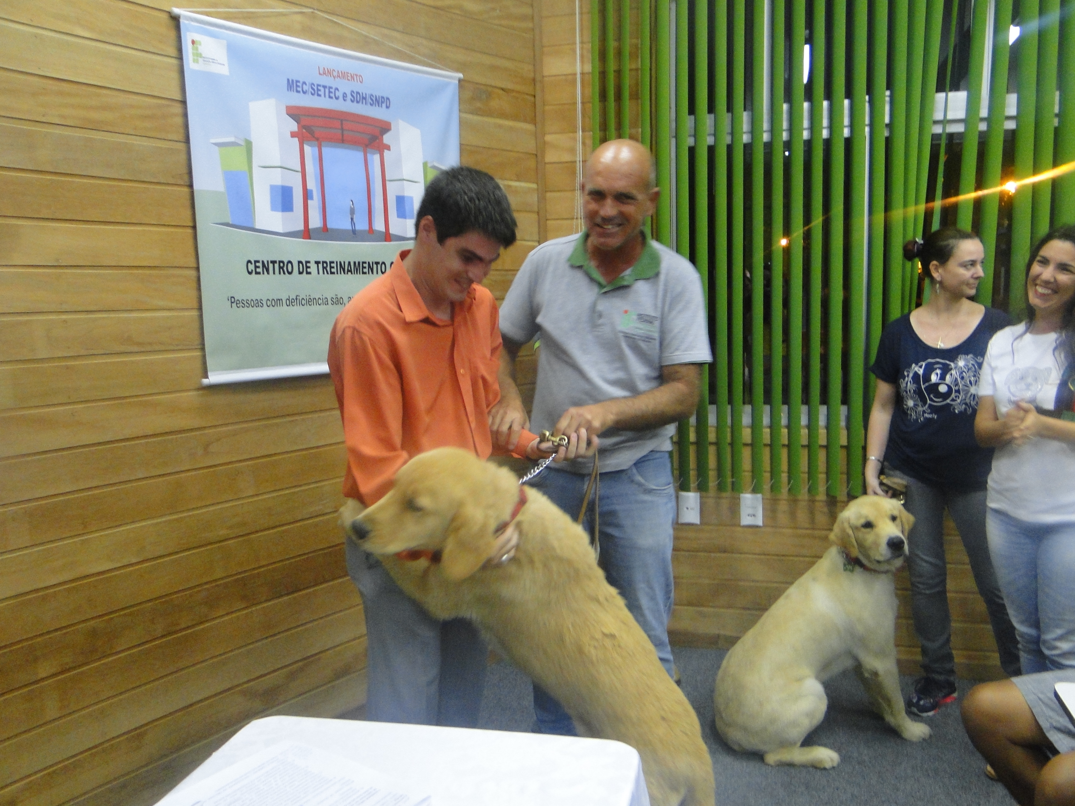Eles são peludos e chamam atenção por onde passam. Não só pela beleza, graça e simpatia. Eles são muito mais que cães com focinhos úmidos e prontos para ganhar “aquele” apertão. Jhonny e Thor agora são verdadeiros cães-guia. A trajetória para alcançar essa conquista foi árdua e incluiu muita transpiração, literalmente. “Os cães andaram uma média de 800 Km para chegar onde estão”, contou Leonardo Goulart Nunes, servidor do IF Goiano – Câmpus Urutaí e aluno do Centro de Formação de Treinadores e Instrutores de Cães-guia, durante a entrega dos primeiros cães-guia formados no Instituto Federal Catarinense (IFC) – Câmpus Camboriú.
