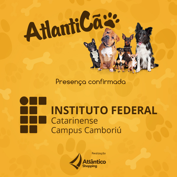 9267_Atlanticao_Posts_Patrocinadores_IFCNos dias 02 e 03 de abril, o Instituto Federal Catarinense (IFC) – Campus Camboriú participa da 2ª edição do AtlantiCão. O evento teve sua concepção em 2010, quando o Shopping Atlântico, de Balneário Camboriú, virou pet friendly e passou a permitir a circulação de cães no seu interior.