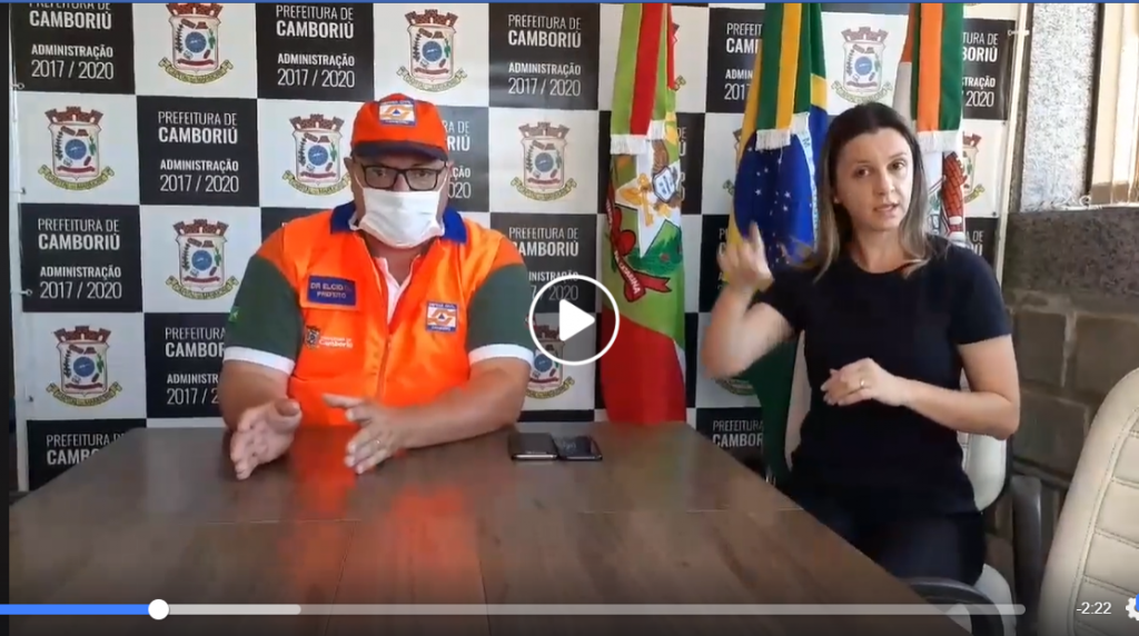 A prefeitura municipal de Camboriú conta com o apoio técnico da servidora do campus, Sany Regina Sarda Justi, para contribuir com a acessibilidade e inclusão social, na prestação do trabalho de tradução e intérprete de libras para divulgação de informações da cidade nas ações relativas ao Coronavírus.