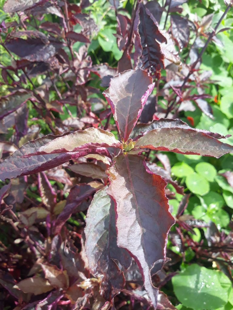Modo de uso: Para o preparo da infusão desta planta utiliza-se suas folhas (de cor avermelhada) ou inflorescências, sendo uma colher de sopa do material picado para 1L de água. Pode ser empregada externamente na forma de gargarejos em casos de dor de garganta, para lavar feridas, herpes ou fazer banho de assento para corrimento vaginal (BOELL, 2022).
