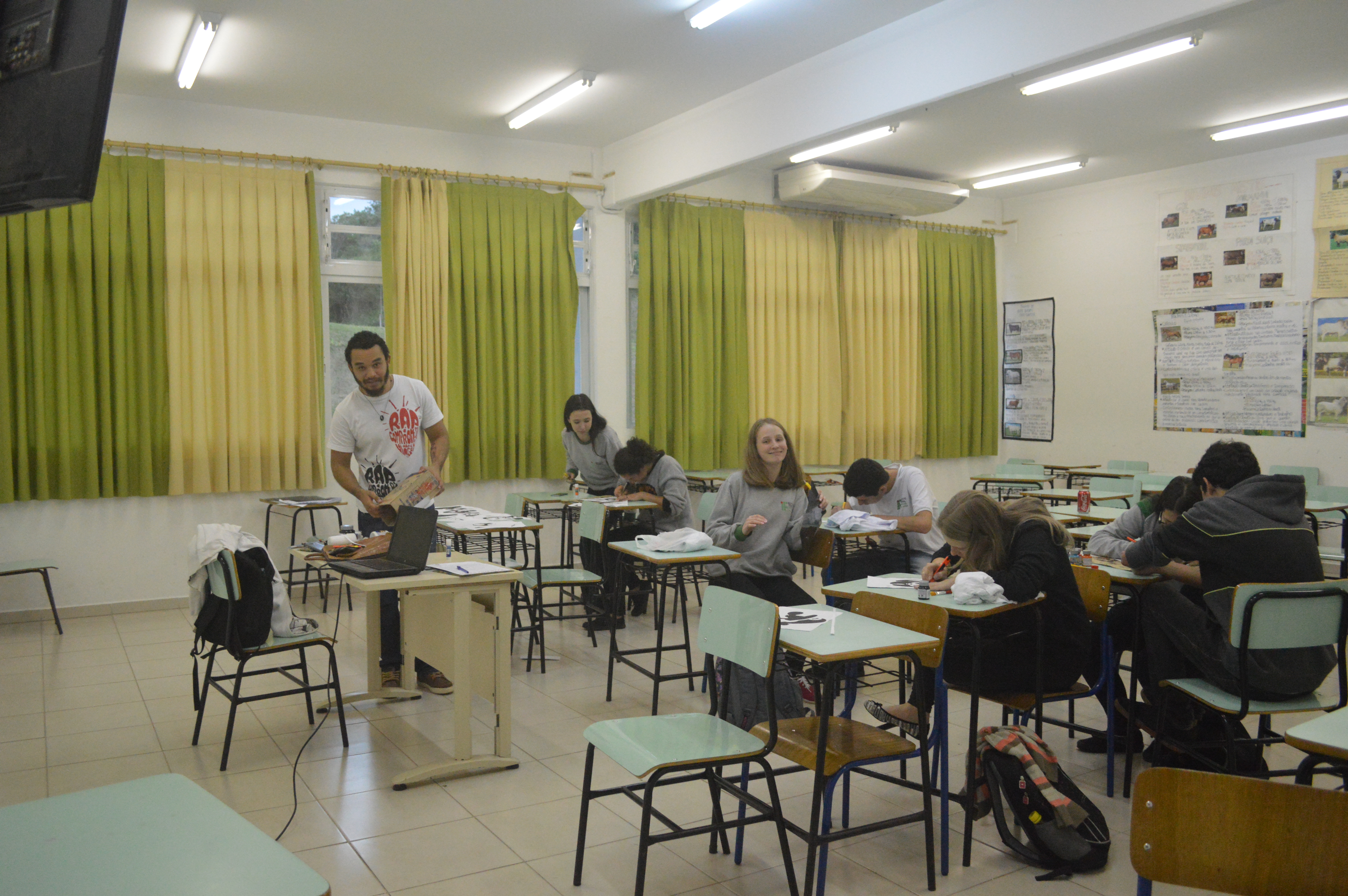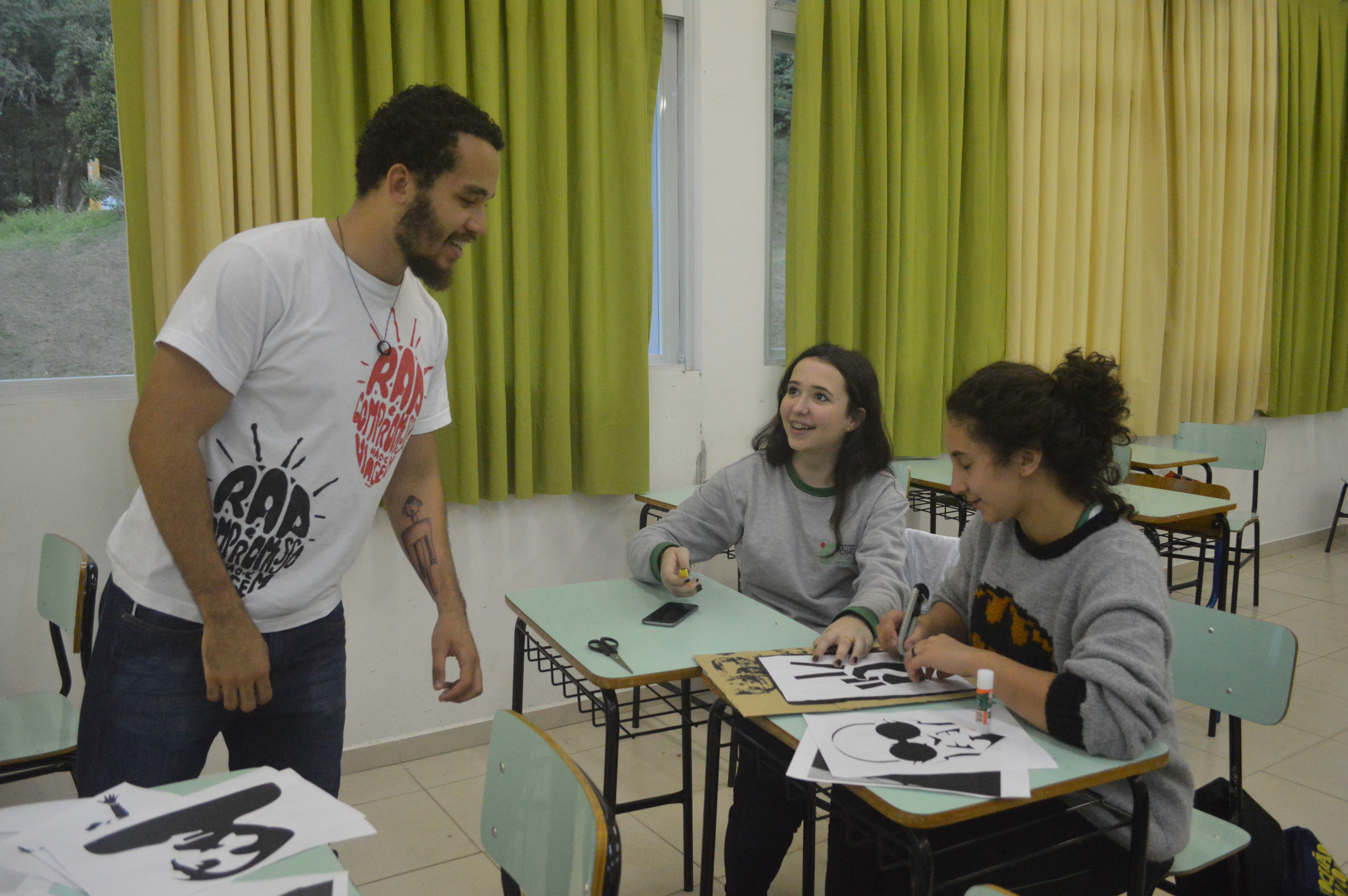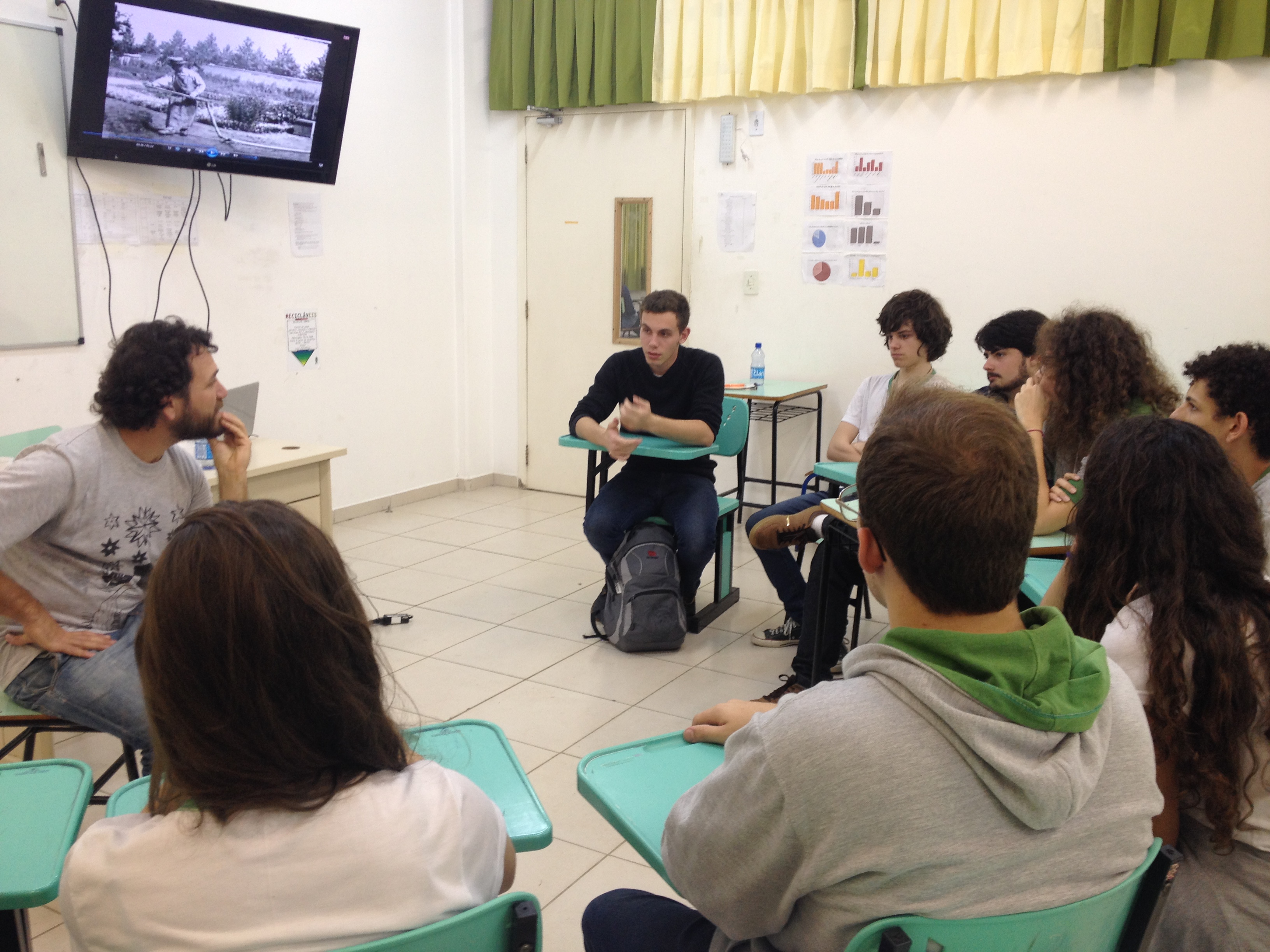 IMG_9193Com as cadeiras dispostas em círculo, os alunos bateram um “papo cabeça” sobre imaginação, construção de mensagem e processo criativo, conduzidos pelo cinegrafista argentino, Santiago Asef. A conversa fluiu e cada estudante, dos tímidos aos extrovertidos, trocaram ideias sobre criatividade, cinema e mundo imaginário. Durante a oficina, Santiago ressaltou que um filme nasce do nosso interesse em comunicar algo. “É a manifestação da subjetividade, é o que dá sentido na arte e no que criamos”, disse.