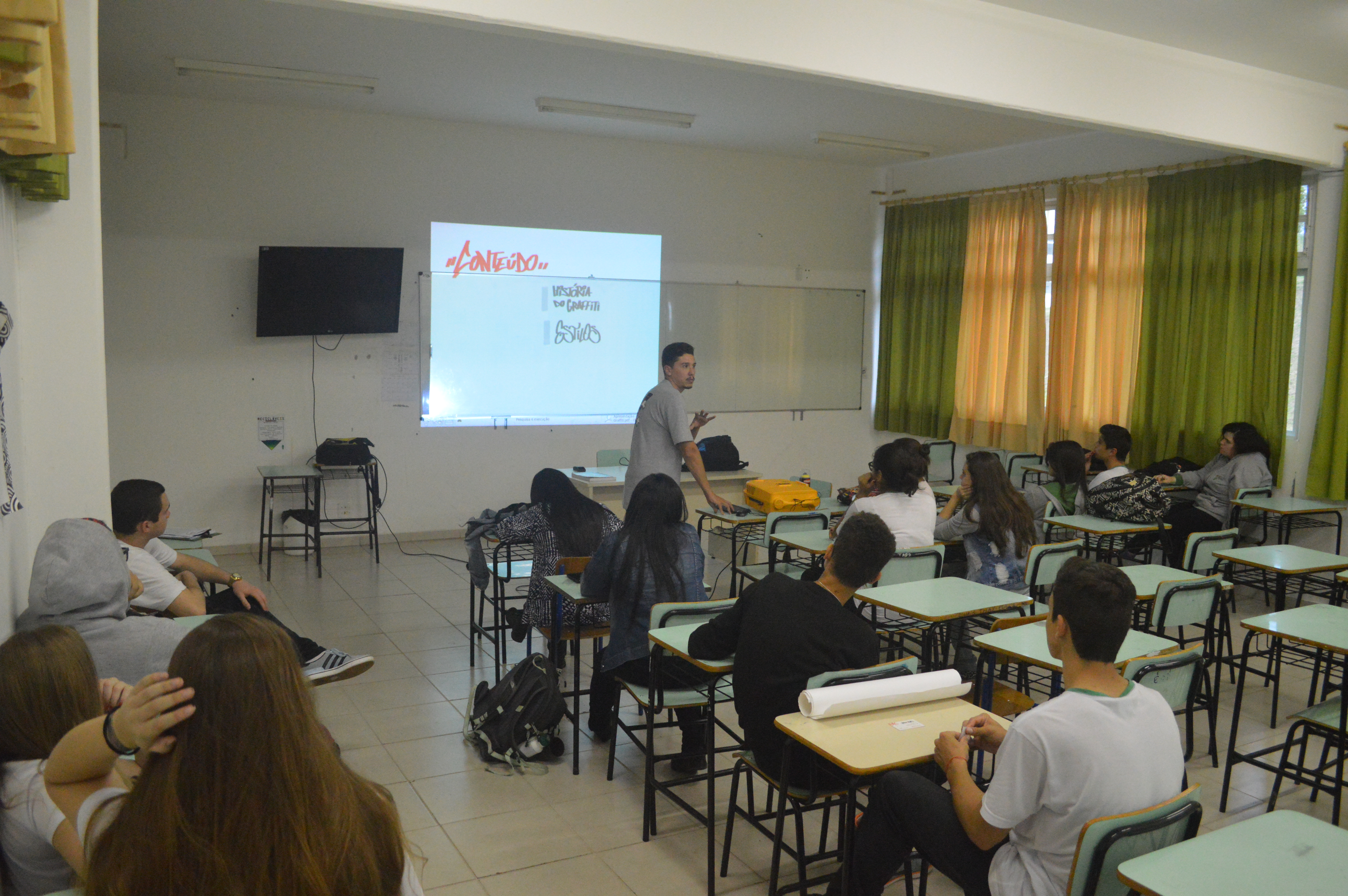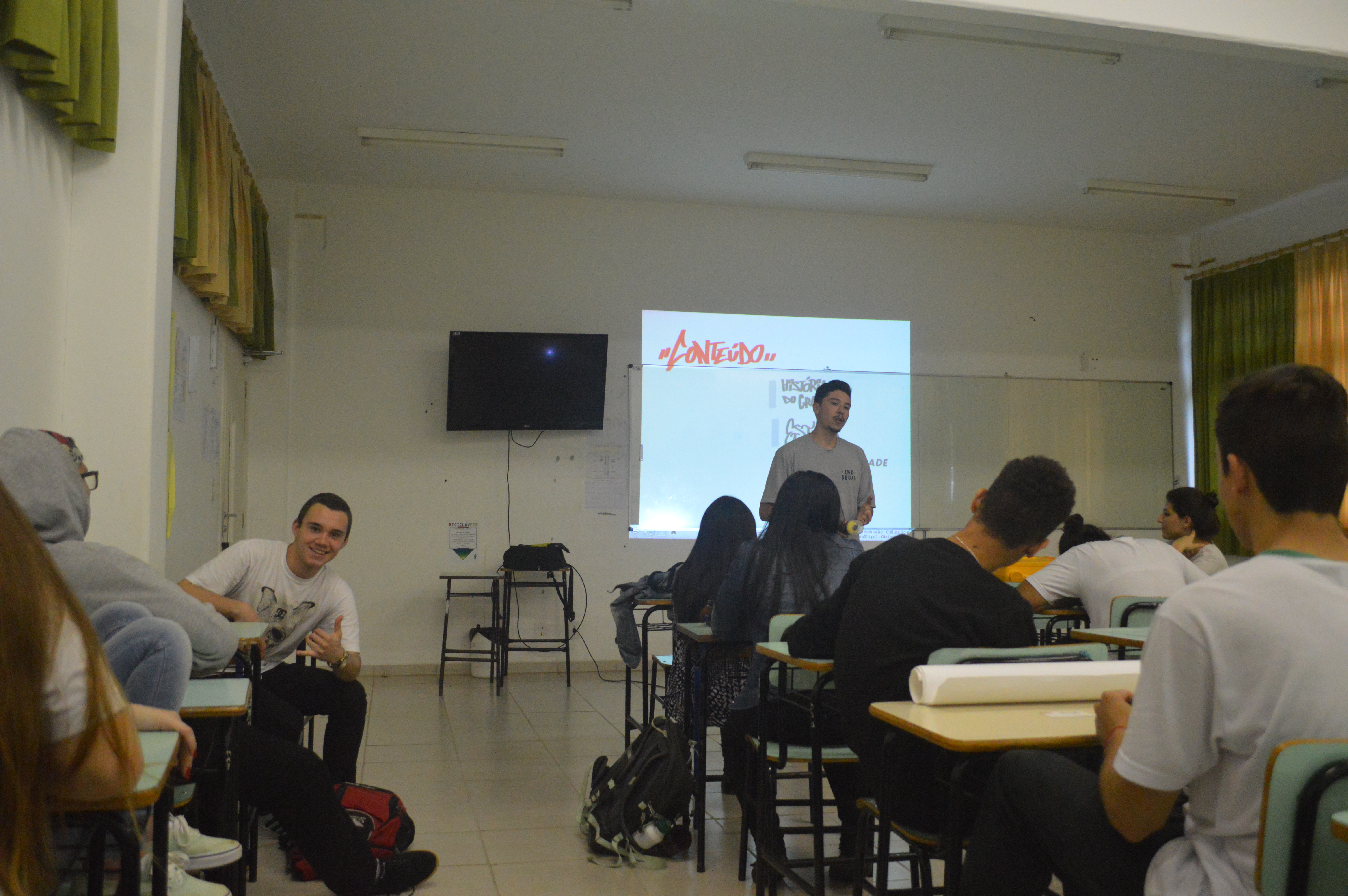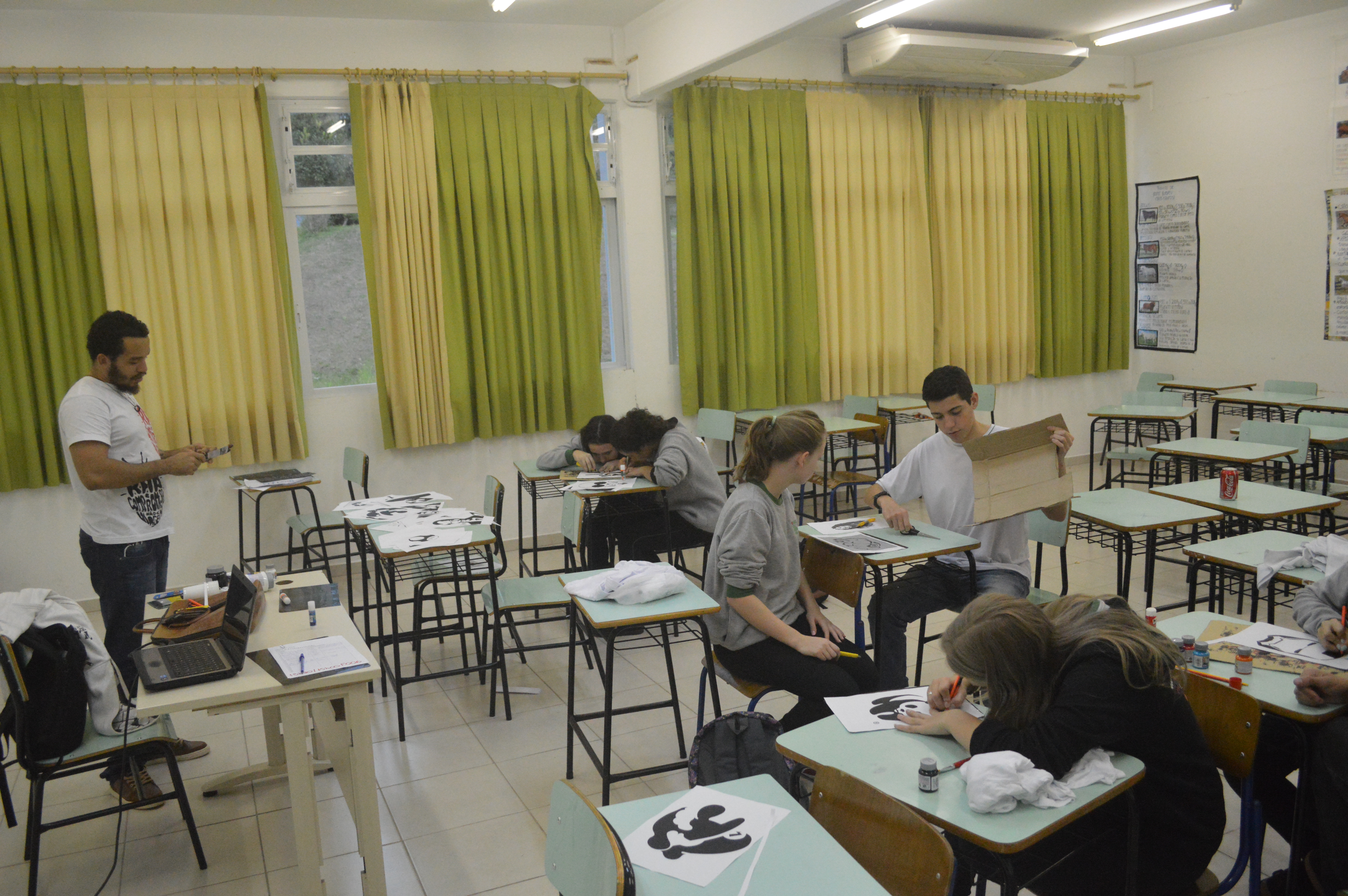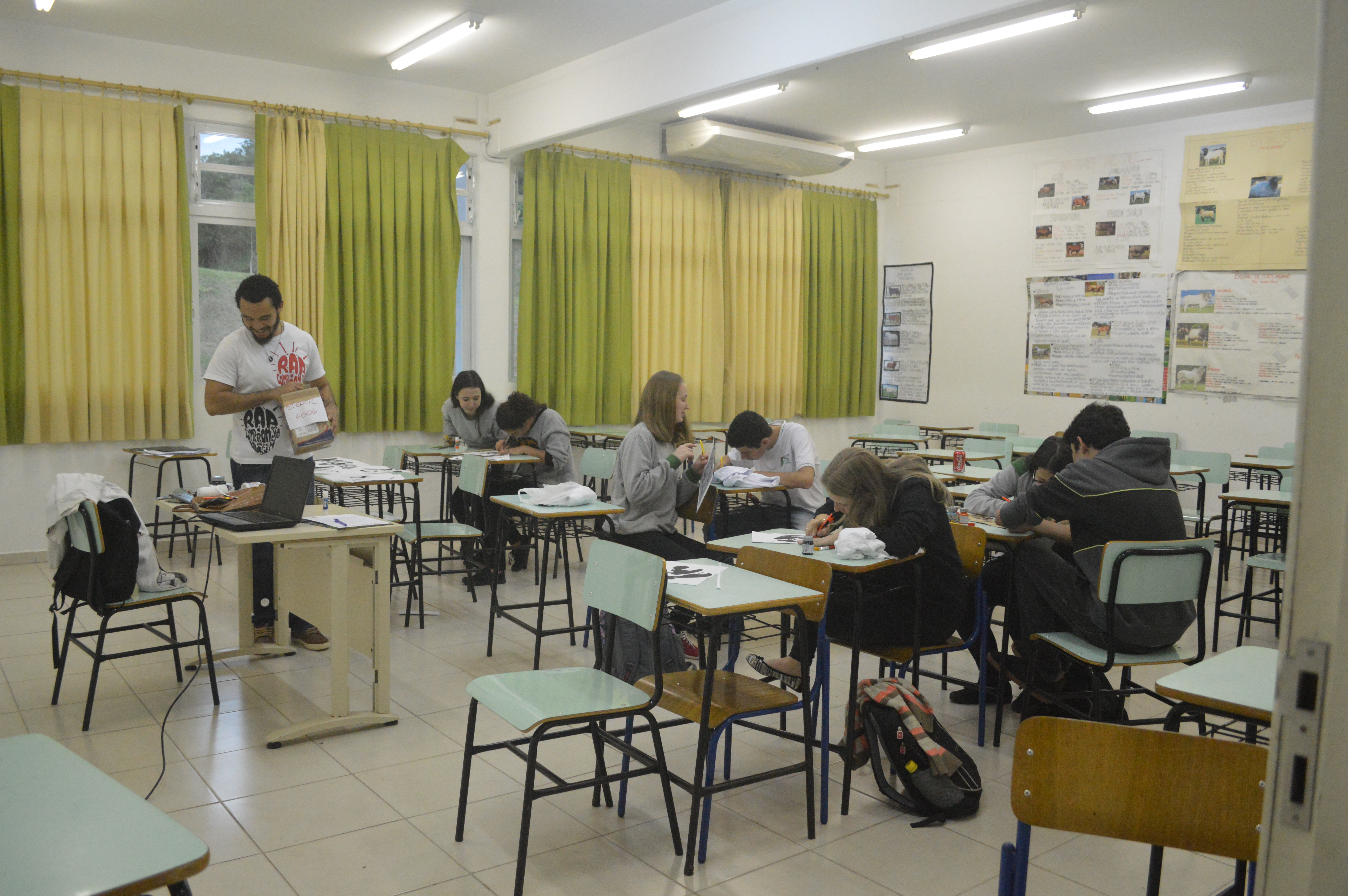 IMG_9193Com as cadeiras dispostas em círculo, os alunos bateram um “papo cabeça” sobre imaginação, construção de mensagem e processo criativo, conduzidos pelo cinegrafista argentino, Santiago Asef. A conversa fluiu e cada estudante, dos tímidos aos extrovertidos, trocaram ideias sobre criatividade, cinema e mundo imaginário. Durante a oficina, Santiago ressaltou que um filme nasce do nosso interesse em comunicar algo. “É a manifestação da subjetividade, é o que dá sentido na arte e no que criamos”, disse.