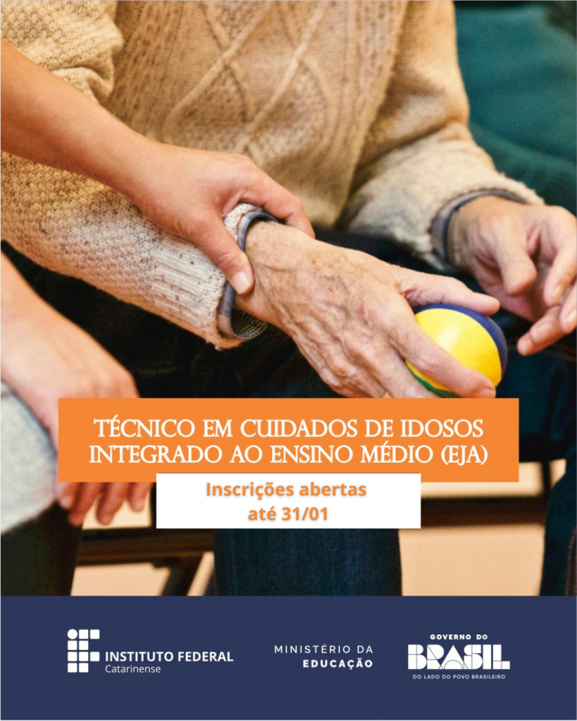O Instituto Federal Catarinense (IFC) – Campus Camboriú está com processo seletivo aberto para o curso Técnico em Cuidados de Idosos integrado ao Ensino Médio, na modalidade Educação de Jovens e Adultos (EJA-EPT). O curso é gratuito, presencial e voltado a pessoas com 18 anos ou mais, que possuam Ensino Fundamental completo e não tenham concluído o Ensino Médio.