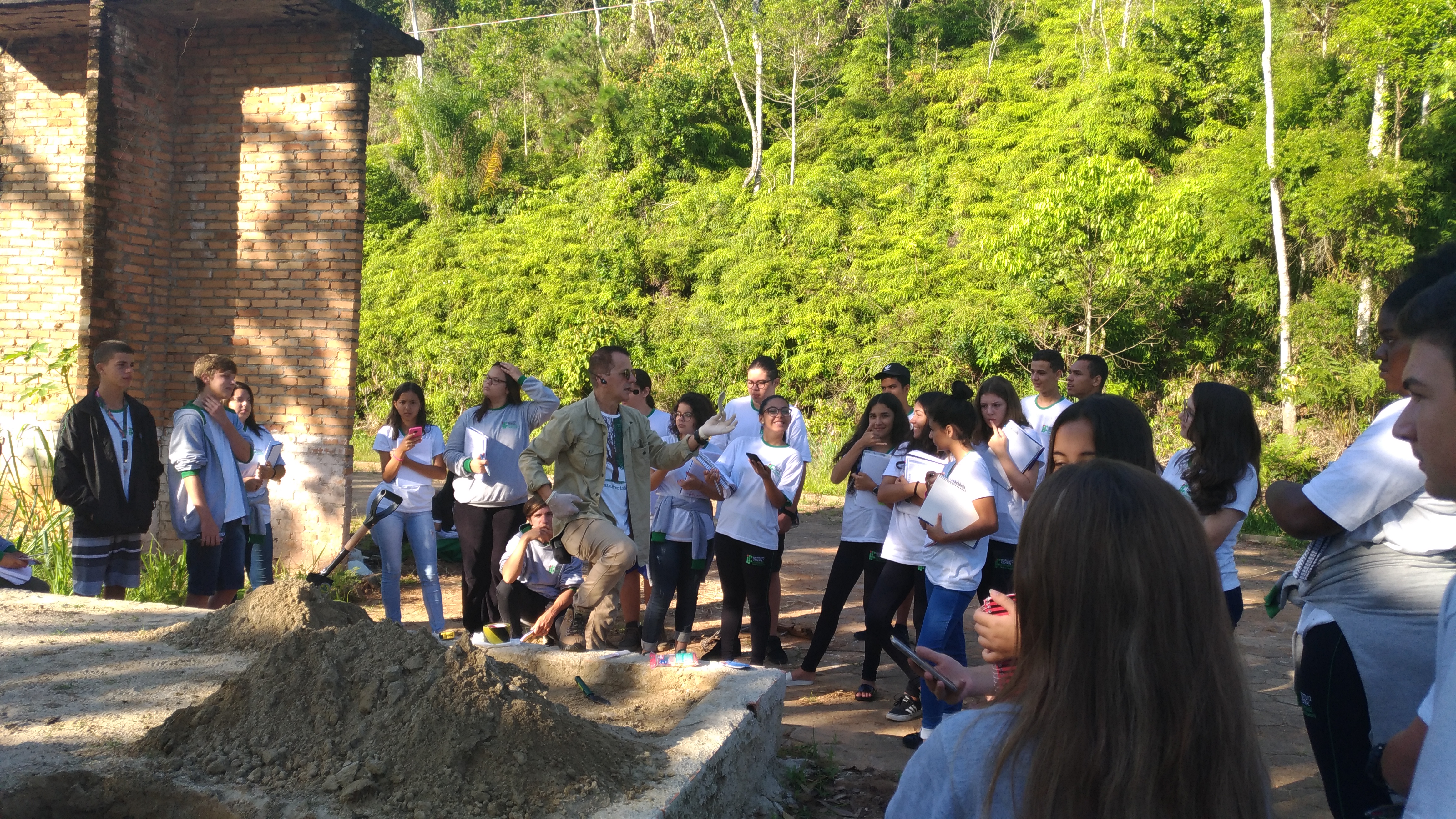 O sambaqui/escola foi viabilizado a partir da construção de um equipamento na área externa, formado por uma caixa de alvenaria com areia, medindo 25 m² de área (5m x 5m) com 50cm de altura. “A proposta era realizar simulações de escavações arqueológicas com os alunos, estimulando-os a pensar, criar hipóteses e tentarem construir significados para contextos de vestígios em um sítio arqueológico experimental”, explicou o docente.